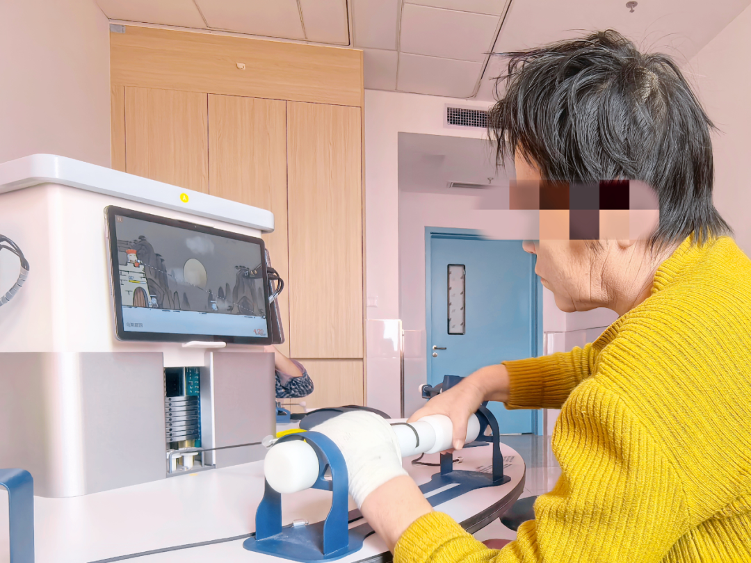 对于肢体功能严重受损的患者来说,每一个简单的动作突破,都需要克服身体的疼痛和心理的考验。1月30日,在作业治疗室内,康复治疗师顾越正辅助李女士做前臂旋前训练,这个看似简单的动作,让李女士疼得眼眶泛红、忍不住落泪。“坚持一下,很好,这样就非常棒了!”顾越一边轻柔调整动作幅度、缓解她的疼痛感,一边轻声鼓励,一旁的老伴也安慰道:“再坚持坚持,咱们好好练,过年咱就能回家包饺子了!”对康复的渴望让李女士擦干眼泪,咬着牙继续配合训练。