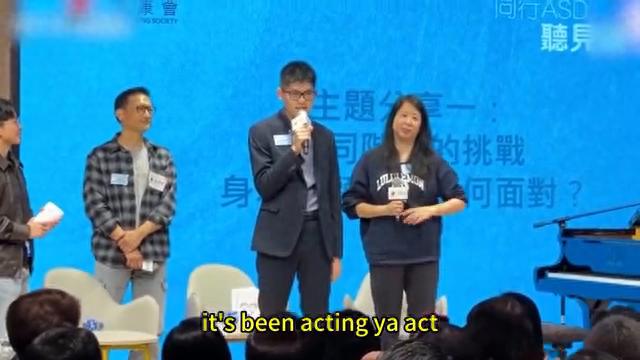 这也太厉害了。前TVB知名男星陈锦鸿与患有自闭症的儿子陈驾桦一起出席"自闭症关注周"活动。18岁的陈驾桦在台上表现落落大方,他用普通话和德语发言。