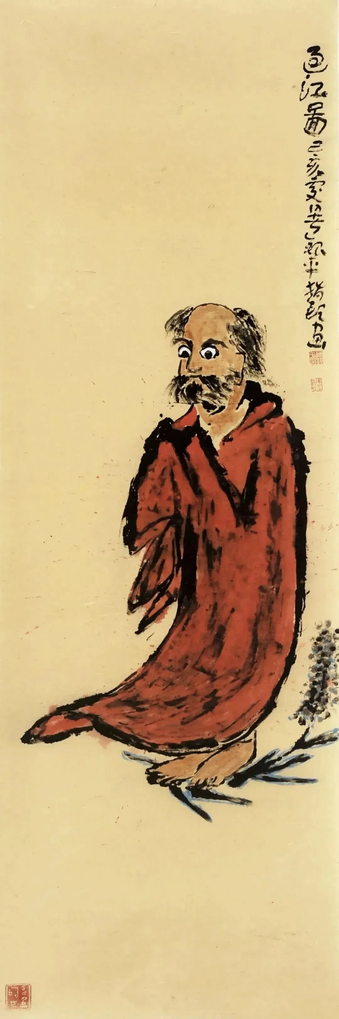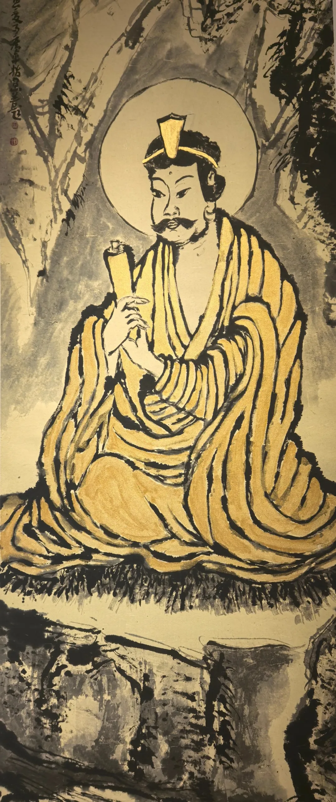 指头蘸墨仿《十七世纪禅画精品:孺童文殊菩萨像》180cmx60cm(原作现存于美国波士顿历史博物馆)