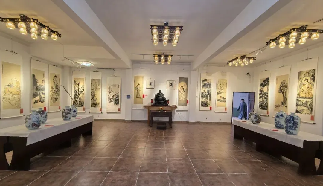 2026年2月4日恰逢丙午马年立春之时,由雪峰真觉写经院、海南广平斋主办,福州鹅峰寺、鹅峰书院承办的“鹅峰喙处·指头生活——陈银平指画作品迎春展”继法国巴黎展之后在福州鹅峰美术馆隆重开幕。此次展览时间截至到3月4日,共展出《孺童文殊》《妙善采药》《一苇渡江》《光无量寿亦无量》《白衣大士》《长眉罗汉》《彼岸》《高山流水》《十里蛙声》等作者近十年来创作的四十四件指画作品,其中包括文殊、观音、达摩、无量寿佛、罗汉造像、渔夫、高士、花鸟、走兽、鱼蛙、山水等多种题材、还有指墨青花釉里红作品。用指头蘸墨来画佛、菩萨、祖师、罗汉造像,是一次既大胆而又带有虔诚和崇敬之心的艺术实践。