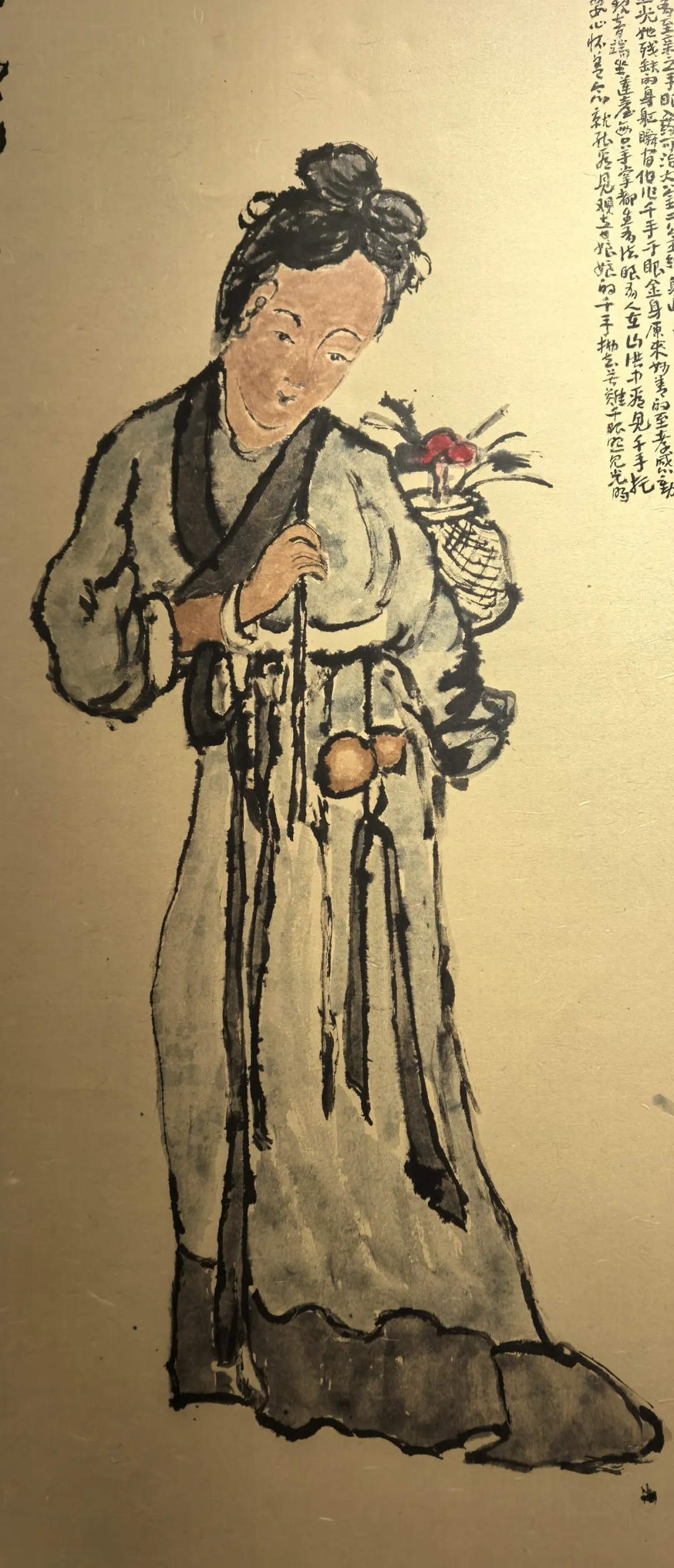 指画《妙善采药图》跋文:相传古印度有位妙庄王,他的三女儿妙善自幼吃素礼佛。每当她带着侍女在山间采药时,总要把草药分给穷苦百姓。百姓们都称她为"药草菩萨"。 妙庄王希望女儿继承王位,妙善却坚持出家修行。盛怒的妙庄王下令烧毁寺院,大火中妙善以血泪浇灭烈焰,从此隐居深山继续修行。多年后妙庄王身患恶疾,名医说唯有至亲之手眼入药可治。大公主二公主纷纷躲避,远在深山的妙善得知后,毅然剜目断臂献药。当妙善的血肉融入药汤时,天空突然绽放万道金光,她残缺的身躯瞬间化作千手千眼金身。原来妙善的至孝感动佛祖,特赐千手遍护众生,千眼遍观世间疾苦。自此,千手观音端坐莲台,每只手掌都生有法眼。有人在山洪中看见千手托起落水孩童,有人在瘟疫时望见千眼洒下甘露。百姓们说,只要心怀善念,就能看见观音娘娘的千手拂去苦难,千眼照见光明。