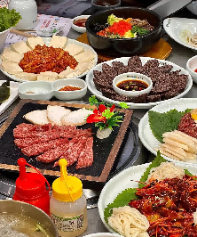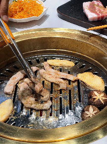 肉在铁板上滋滋啦啦的烤制声特别治愈,尤其是五花肉,肥而不腻还带有油脂的芳香,搭配辣白菜就格外的清爽,配烤肉的小菜都很清爽解腻~