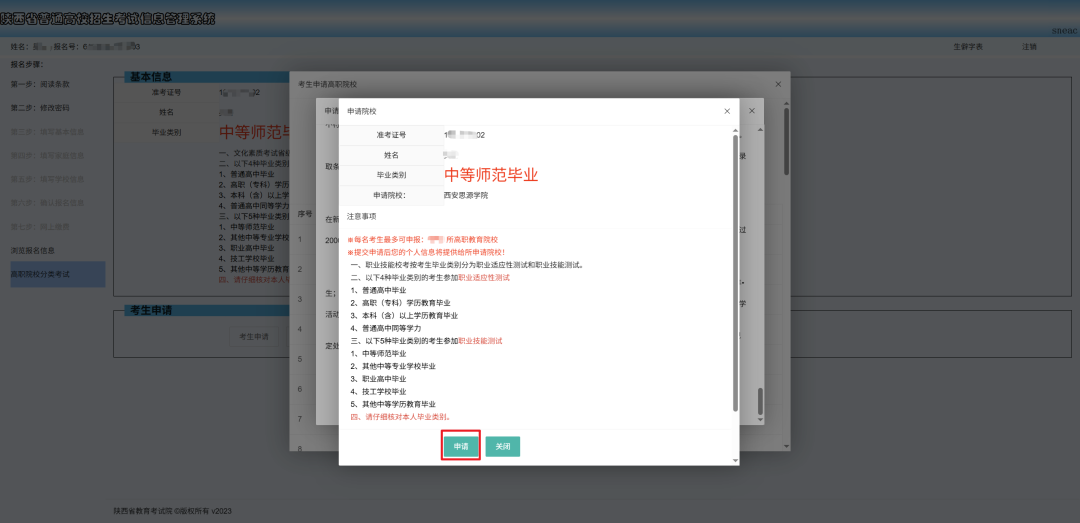 第三步:考生申请