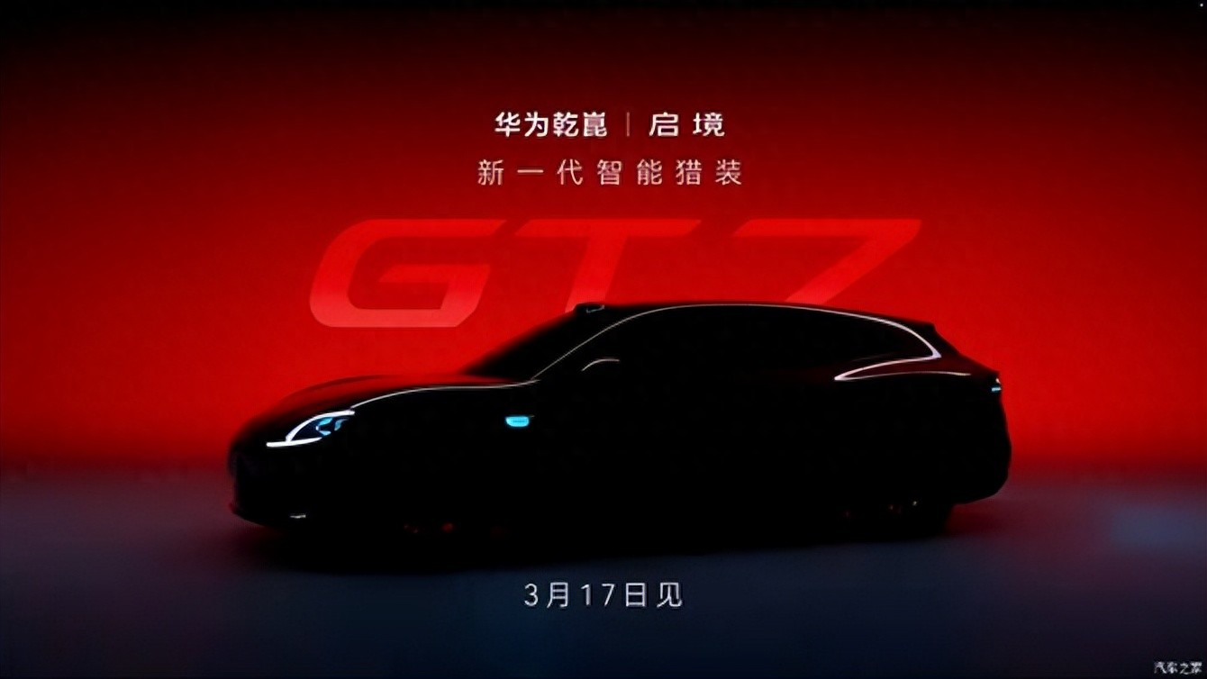 近日,从启境官方了解到首款猎装版轿跑 GT7将于2026年3月17日亮相,新车定位于中大型纯电轿跑,预计将于2026年6月上市交付。动力上,提供增程版和纯电版。内置华为数字底盘引擎和最新的华为乾崑智驾系统,支持最新L3级乾崑智驾辅助系统。