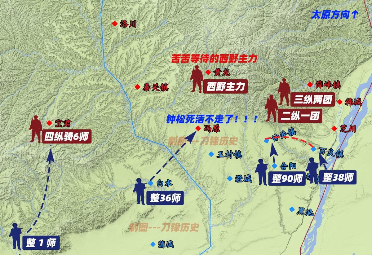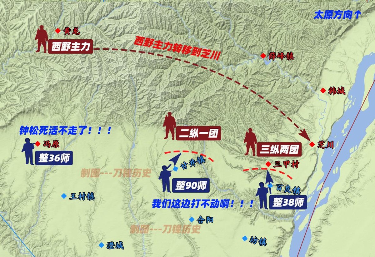 换句话说,整编第三十六师已经被西野主力当作一个“单独目标”,锁定在冯原—壶梯山—王村镇这个半圆形区域内。