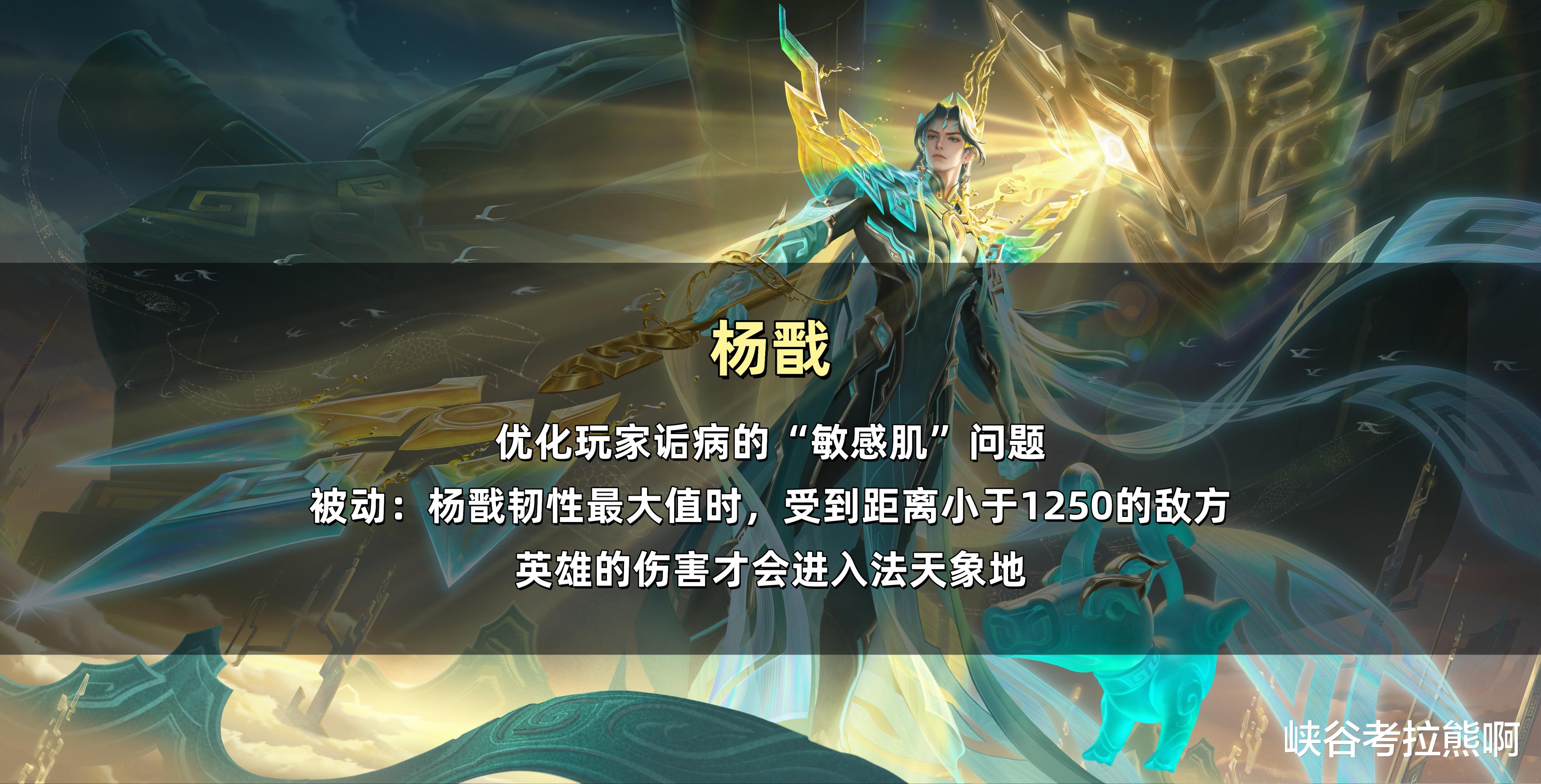 杨戬(加强):杨戬韧性达到最大值时候,受到1250码内的敌方英雄伤害才会进入“法天象地”。