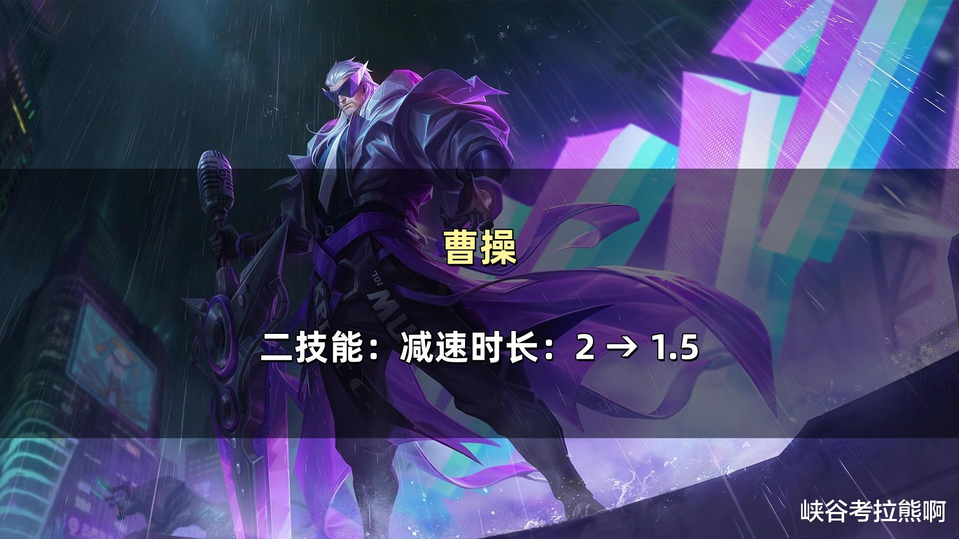 曹操(削弱):二技能减速时长降低0.5秒