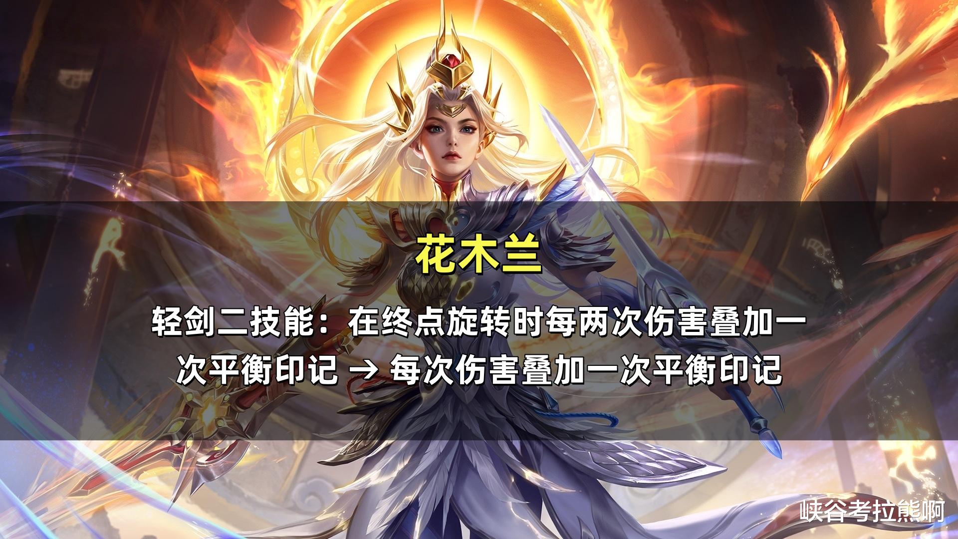 花木兰(加强):轻剑二技能改为了每次伤害均可叠加一层印记。