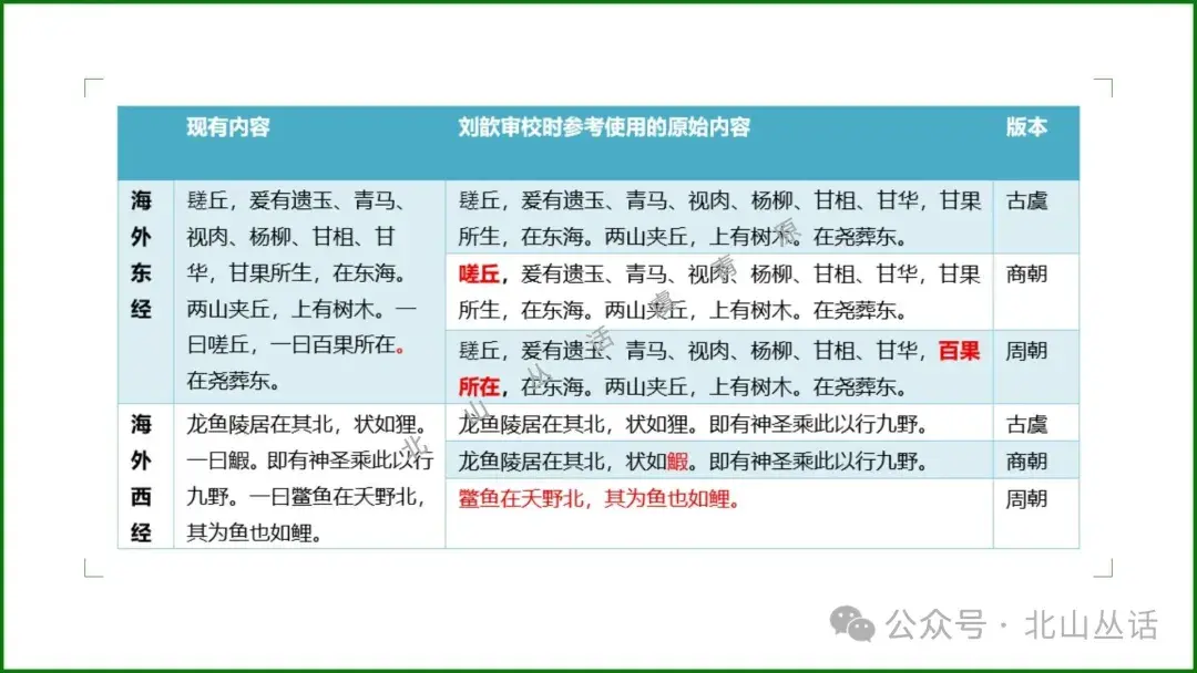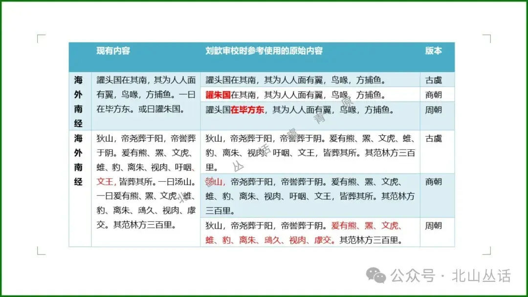 然后,刘歆对山海经的整理主要是归纳,是升级版的细活。刘歆在父亲的基础上,以古虞版为主体版本,将商朝版、周朝版与古虞版的差异处,作为“一曰”的内容合并入书中。