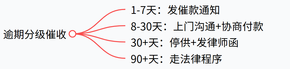 如果客户还是逾期了,别盲目催款,要按逾期时间分级处理,效率才高。