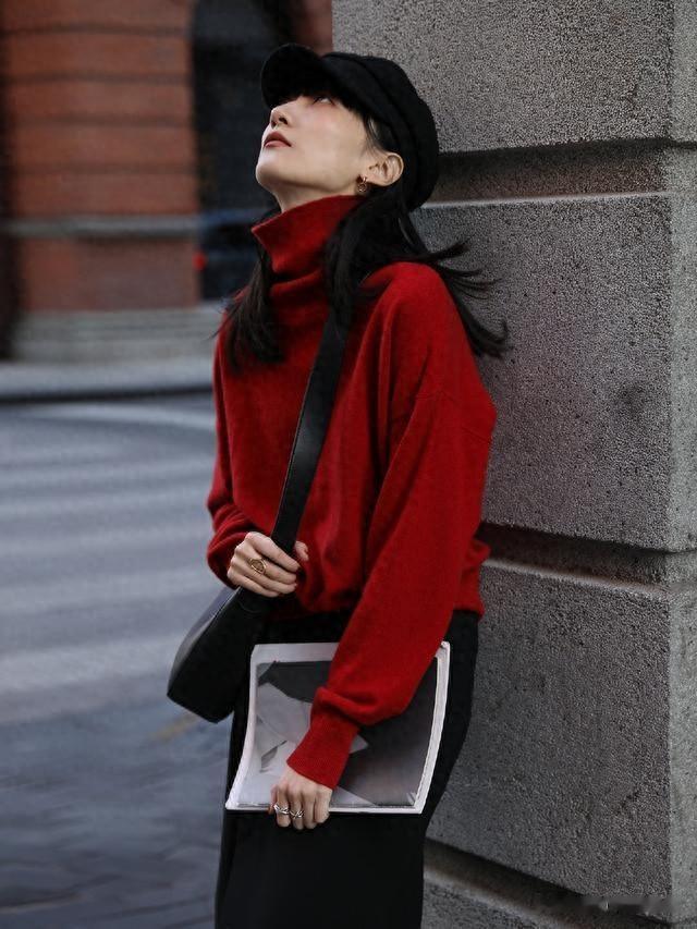 需要重点避雷的是荧光红。这种高明度、高饱和度的红调对任何肤色都不友好,冷白皮穿会显得突兀,暖黄皮穿会显得土气。选择红毛衣时,可将毛衣平铺在自然光下观察色相。真正的“显白红”应带有一定的灰度或暗度,如砖红色、枣红色等,这类红调在视觉上更柔和,能与肤色形成自然融合。