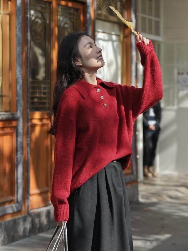 二、小个子选常规款毛衣:巧妙分割比例——用“黄金分割”打造视觉增高小个子穿红毛衣最易陷入“被淹没”的困境。常规款红毛衣若搭配不当,容易让整体造型显得拖沓。我的观察是:小个子选择红毛衣时,应优先考虑“短款”或“前短后长”的设计,通过衣长与腰线的配合制造“黄金分割”效果。