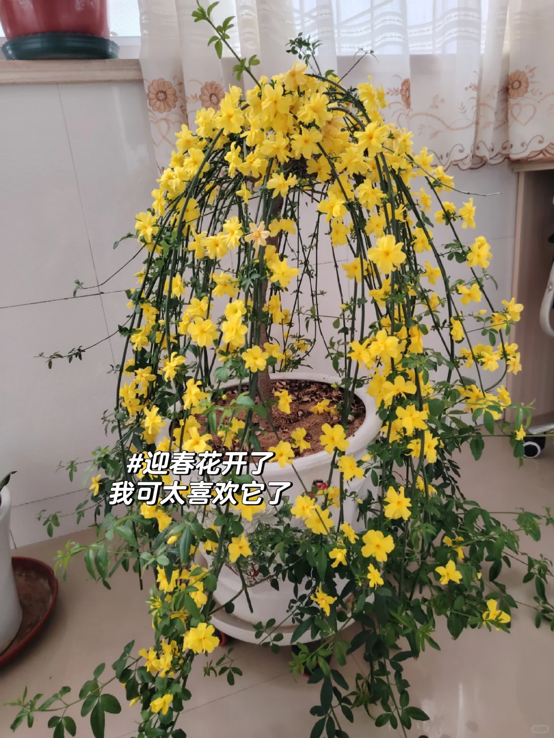 建议,冬季环境温度不低于5℃,就别养迎春花,且即使冬天的温度低至零下30℃,也没有必要特意的挪到室内,相反,冻着养,2月到4月将不断开花。