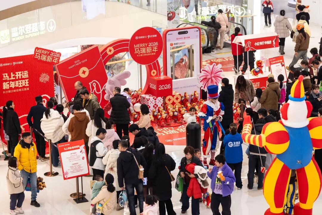 春节假期,长沙荟聚、万象城等核心商圈客流如织,餐饮、零售、文娱等业态全面开花。各大商场更是使出浑身解数“放大招”:步步高梅溪新天地的“万事大集”将传统表演与特色摊位巧妙融合;长沙荟聚的非遗市集里,面塑、花灯、吹糖人等技艺轮番亮相;而永旺梦乐城(湘江新区店)的新春游园会,则成为了家庭客群的遛娃好去处。