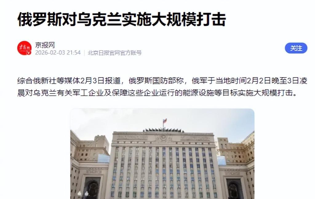 2026年2月头三天,俄乌冲突烈度飙升,更释放出强烈信号——俄乌冲突的大结局或许真的要来了。
