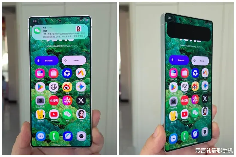 三星的新方案通过硬件与软件的深度协同,可动态调节屏幕可视范围,既能全局防窥,也能局部防窥。根据数码博主 @i冰宇宙 的演示,当你收到一条很私密的微信消通知息时,在你的角度能看到全部内容。但在别人倾斜的角度来看,通知内容是全黑的,与此同时屏幕其他部分的显示丝毫不受影响。
