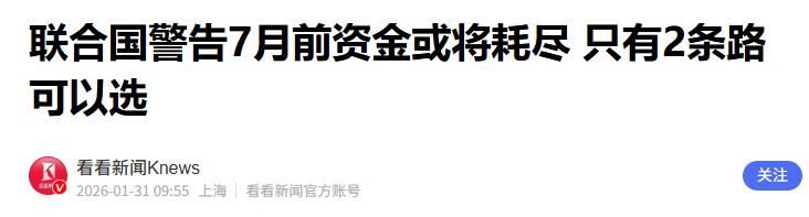 看看新闻Knews 2026-01-31——联合国警告7月前资金或将耗尽 只有2条路可以选