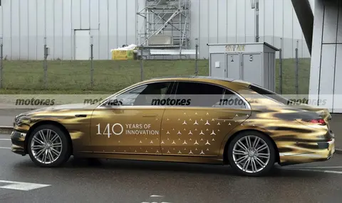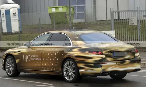 车身侧面延续经典的“雪茄式”车身比例,4970mm的车长(预计)搭配2999mm轴距,依旧保持优雅修长的姿态。谍照显示新车将采用全新样式的20英寸多辐式轮毂,搭配隐藏式门把手与溜背式车顶,进一步强化科技感。车尾部分,推测将取消贯穿式LED尾灯,灯组内部则采用三维立体光源,配合微微上翘的扰流板与双边共两出排气装饰,兼顾豪华感与运动属性。