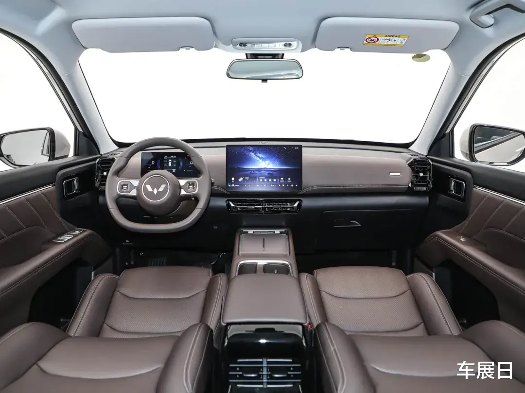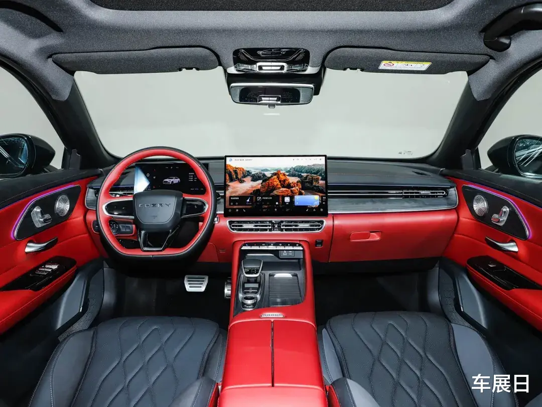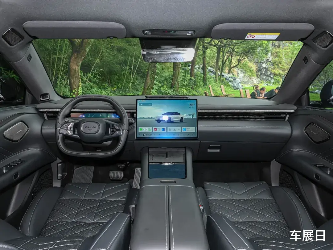内饰是环抱式座舱,双屏搭配,12.8英寸中控屏配Ling OS系统,支持多种手机互联。座椅有5座和7座布局,前排座椅靠背可放平,二排座椅靠背角度大,后排座椅可放倒。