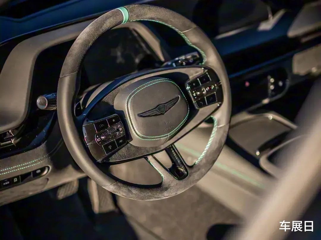 内饰采用翻毛皮材质搭配绿色缝线,方向盘有回正标识,座椅、扶手都用翻毛皮装饰,筒式座椅包裹感强。它丰富了Magma高性能部门车型分类,展现了Magma的未来愿景。