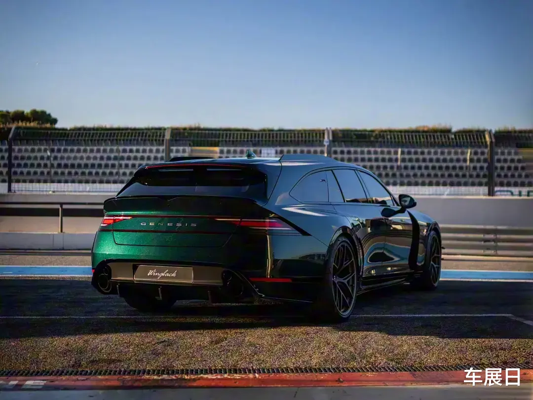 新车车身低趴修长,呈现出旅行车的优雅姿态。车头是标志性的分体式双层车灯和黑化盾型蜂窝格栅,前包围两侧还有导流槽。侧面是大尺寸宽胎与运动轮圈,长后悬,车顶下溜。尾部有双层扰流板,夸张后包围,双边共两出排气。新车基于G90轿车平台打造,轴距3.2米,车长5.1米。