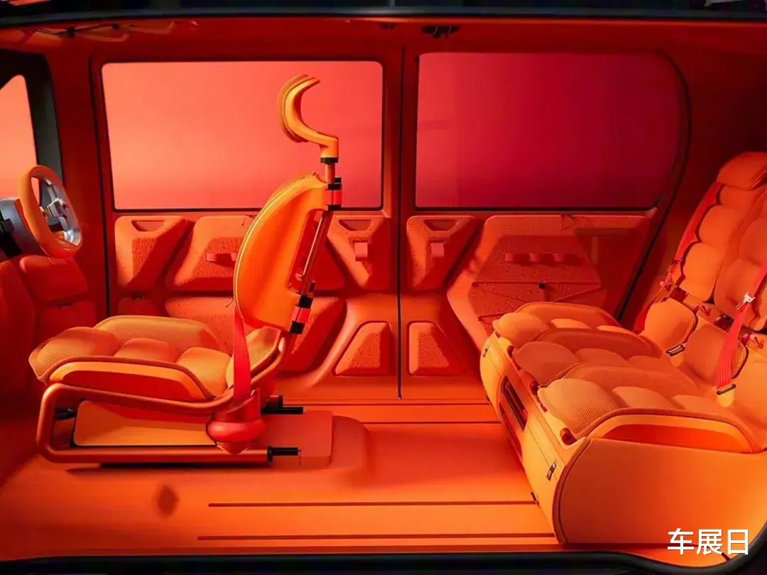 内饰前排是极简风格,取消了传统中控台,驾驶位在中央,支持1+3四座或3+3六座布局,驾驶席是旋转座椅,后排座椅可放倒加床垫。它基于纯电动平台打造,定位紧凑型MPV,是纯电动、后轮驱动,还支持V2L外放电功能。