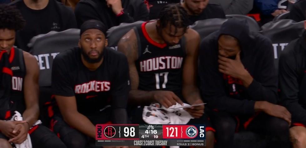 火箭输给快船的比赛,又一次在上半场领先十分的情况下,让对手用几乎三个回合就反超了比分,而这三个回合基本就是乌度卡把霍勒迪换上来,霍勒迪回报了连续的两个失误,和被打一个2+1,一场比赛的节奏,往往会在几个回合的细节里边被带走!通过今天这场比赛,可以看出来,在连续的客场征战,连续的被逆转输球之后,火箭的球员已经丧失了斗志,乌度卡暂停期间的怒吼已经唤不醒球员们的激情!