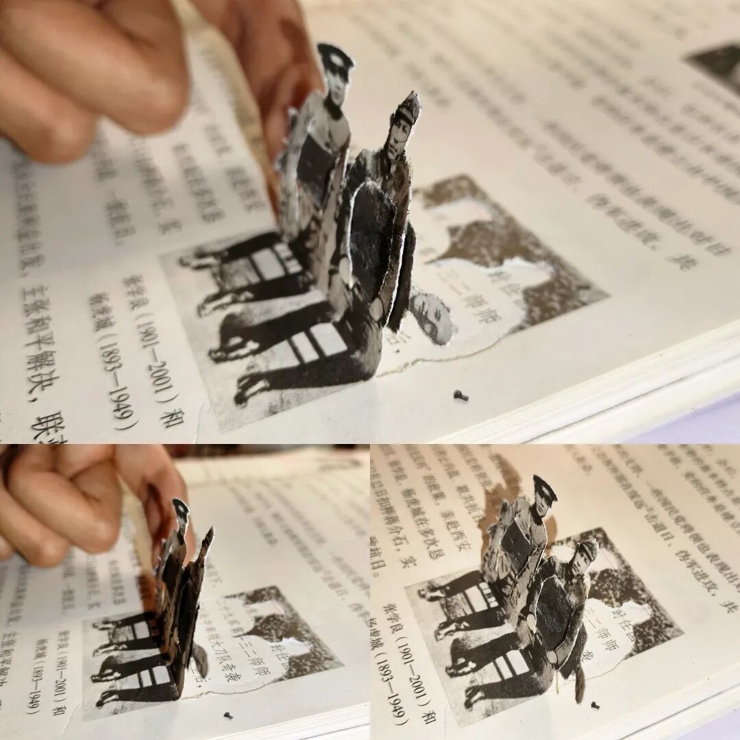 女儿把她的历史书拿来给我看,她把上面的小人用圆规抠了下来,塞到了另外两个人手里。
