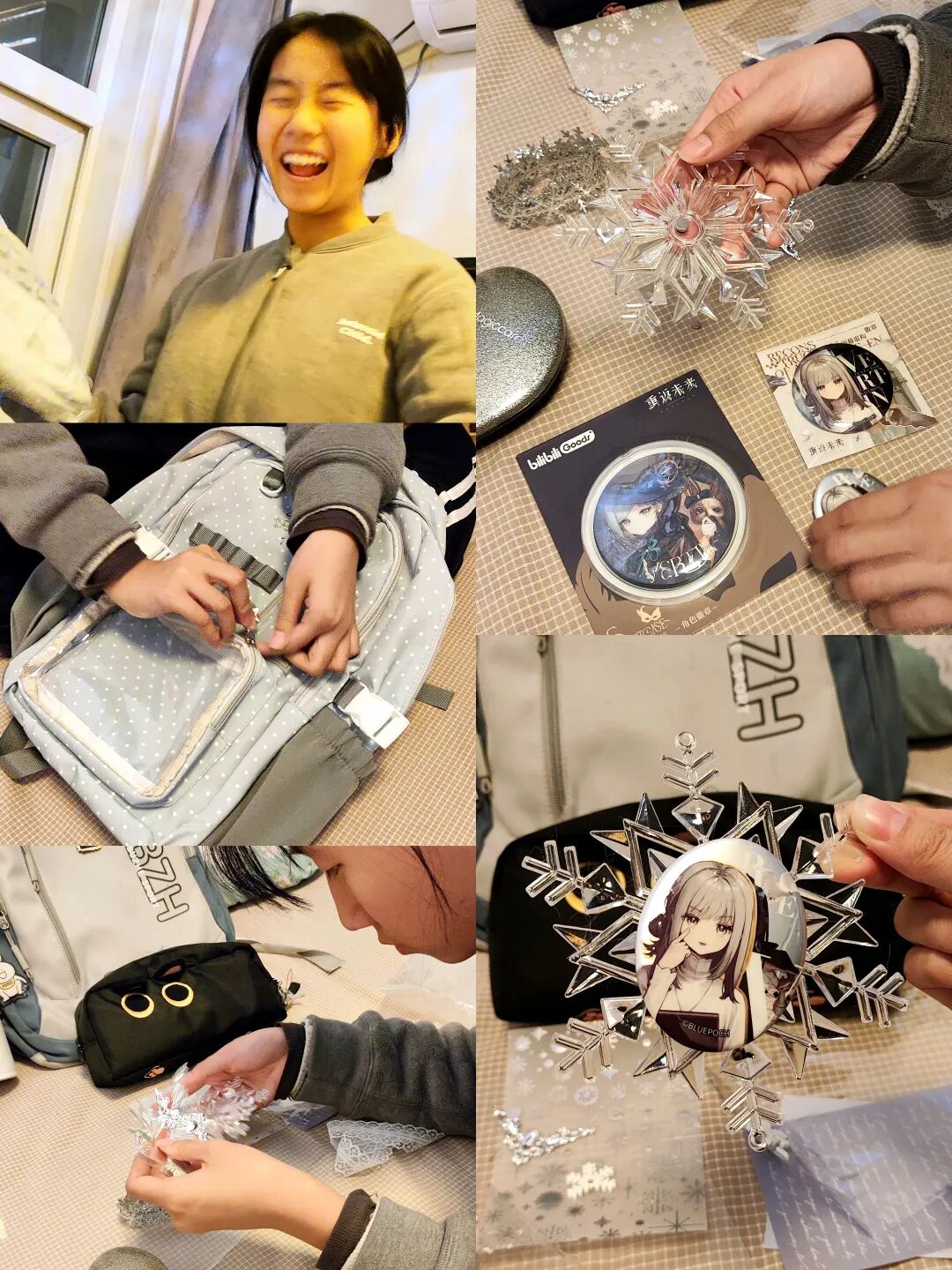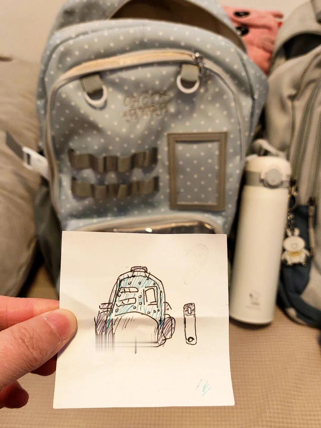 她说,同学问她买的什么书包,她在学校里凭记忆画了一下。