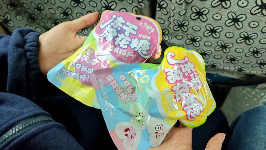 她说同学给她吃了个脆的棉花糖,她觉得很好吃,就去学校小卖部里买了两袋,拿回来让我也尝尝。