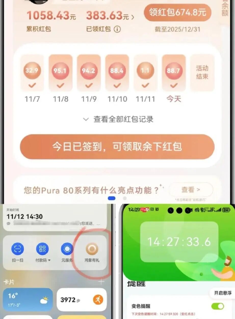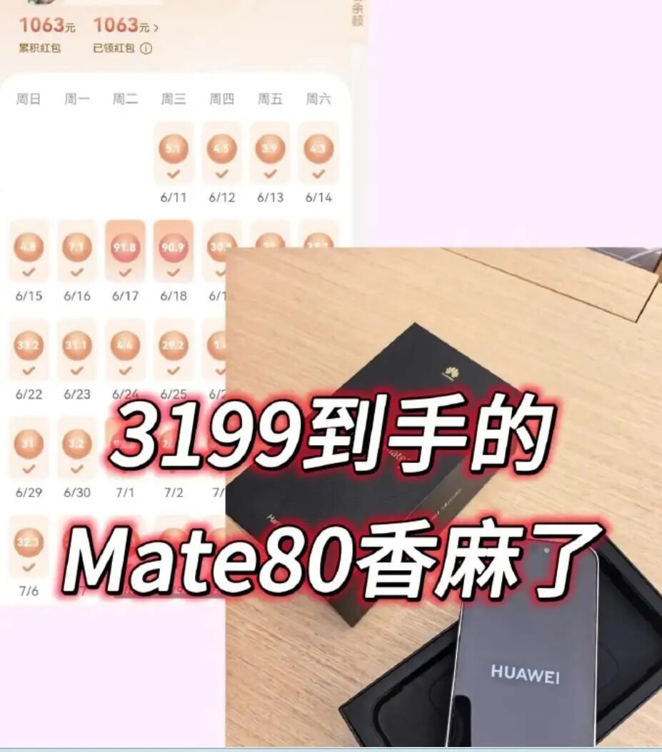 有博主已经实测成功,用华为老机型(比如 Mate 60 Pro+)升级鸿蒙系统后,每天签到 “鸿蒙日日新” 活动领红包,累计 60 天最高每天能领 100 元!把红包和国补一叠加,12G+256G 版 Mate 80 居然 3199 元就能拿下,12G+512G 版也才 3699 元,16G+512G 版 5499 元叠完福利 4999 元,这价格比很多中端机都香!