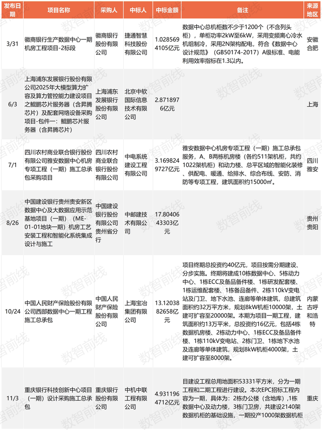 金融作为最早一批开启大模型应用探索的行业,也在2025年进行了数据中心建设,至少出现了20个亿元大单。