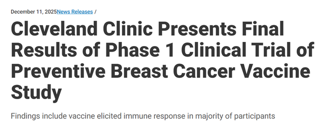 克利夫兰诊所癌症研究所的G. Thomas Budd, M.D.表示,“这项试验结果令人鼓舞,它表明试验性疫苗不仅安全性良好、耐受性佳,还能在超过70%的参与者中成功激发免疫应答。”