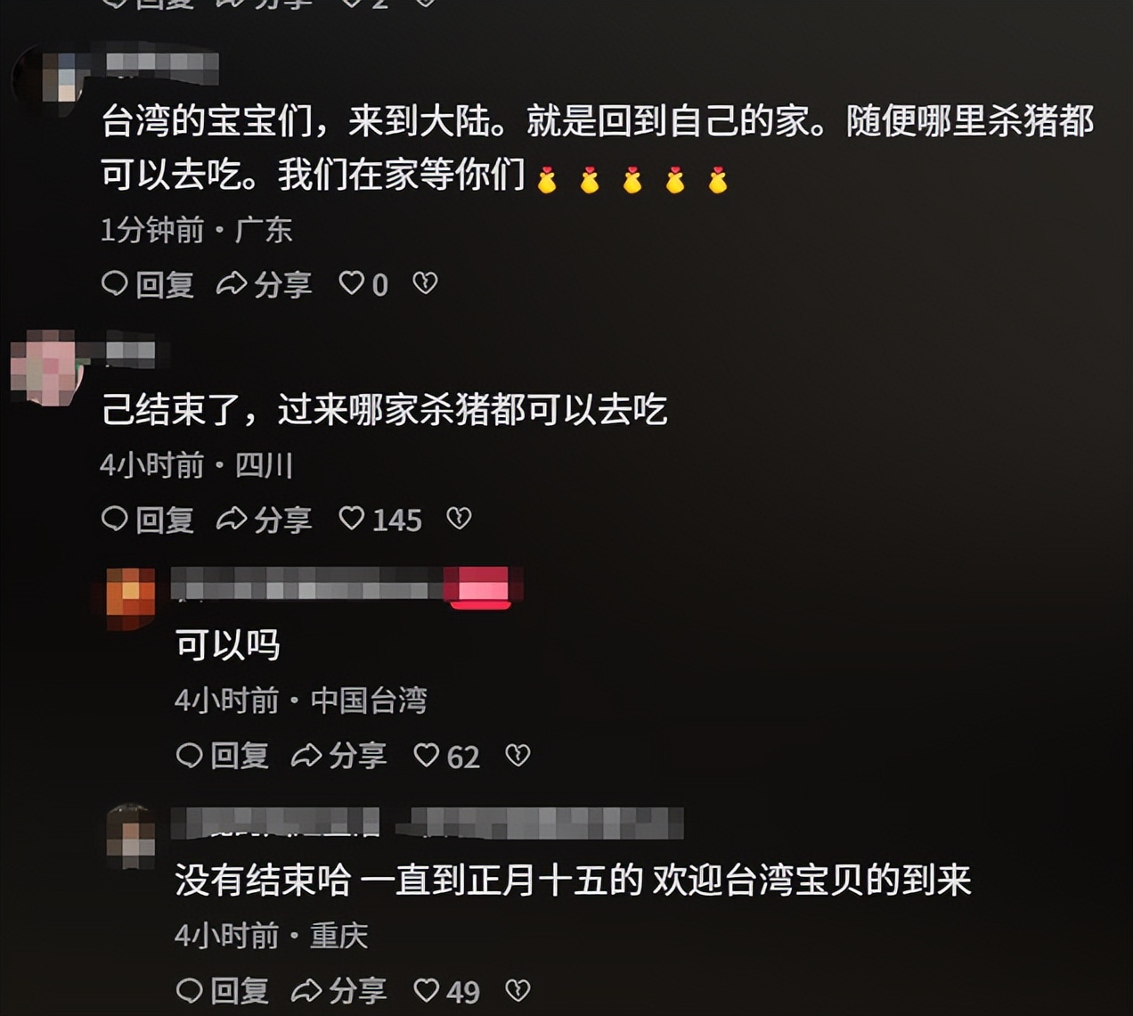 而在评论区中,无数网友回应了对台湾网友们的热情,很多网友都表示一直欢迎台湾网友们的到来,也建议远道而来的台湾网友们多玩玩多逛逛,不仅有合川刨猪宴们还有很多好玩的好吃的等着台湾网友们尝试。
