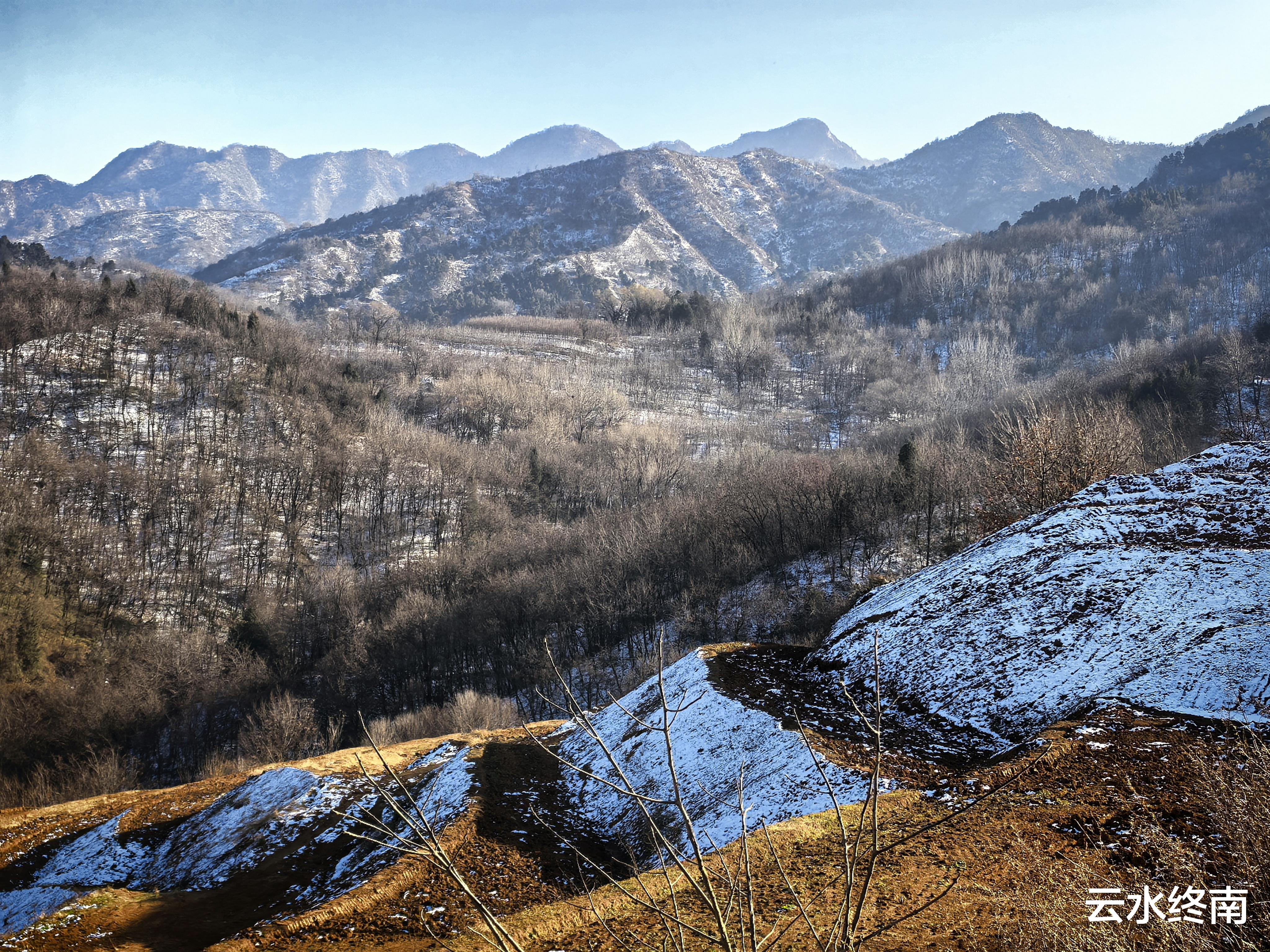 南山上前两天的积雪还没有完全消融,要是刚下过雪,在这里看到的就是大雪山的壮观景象。