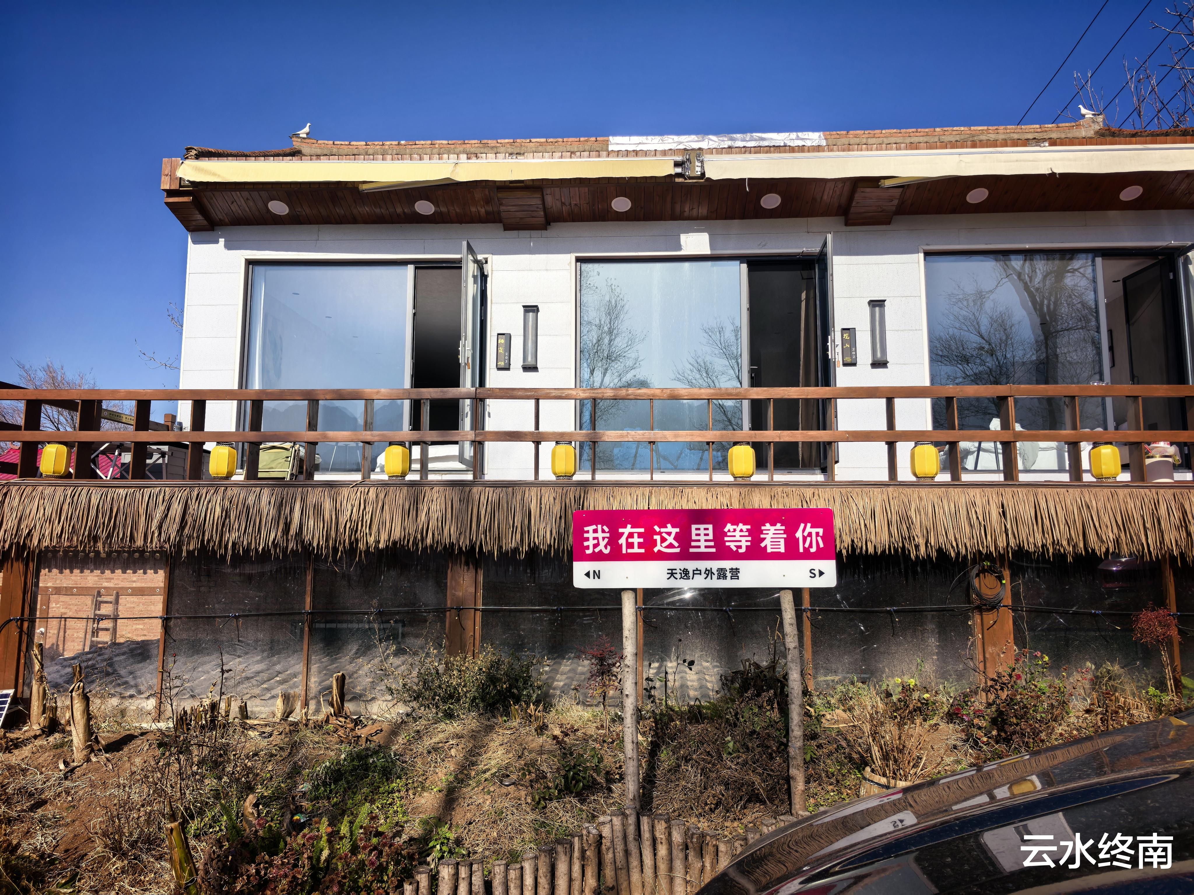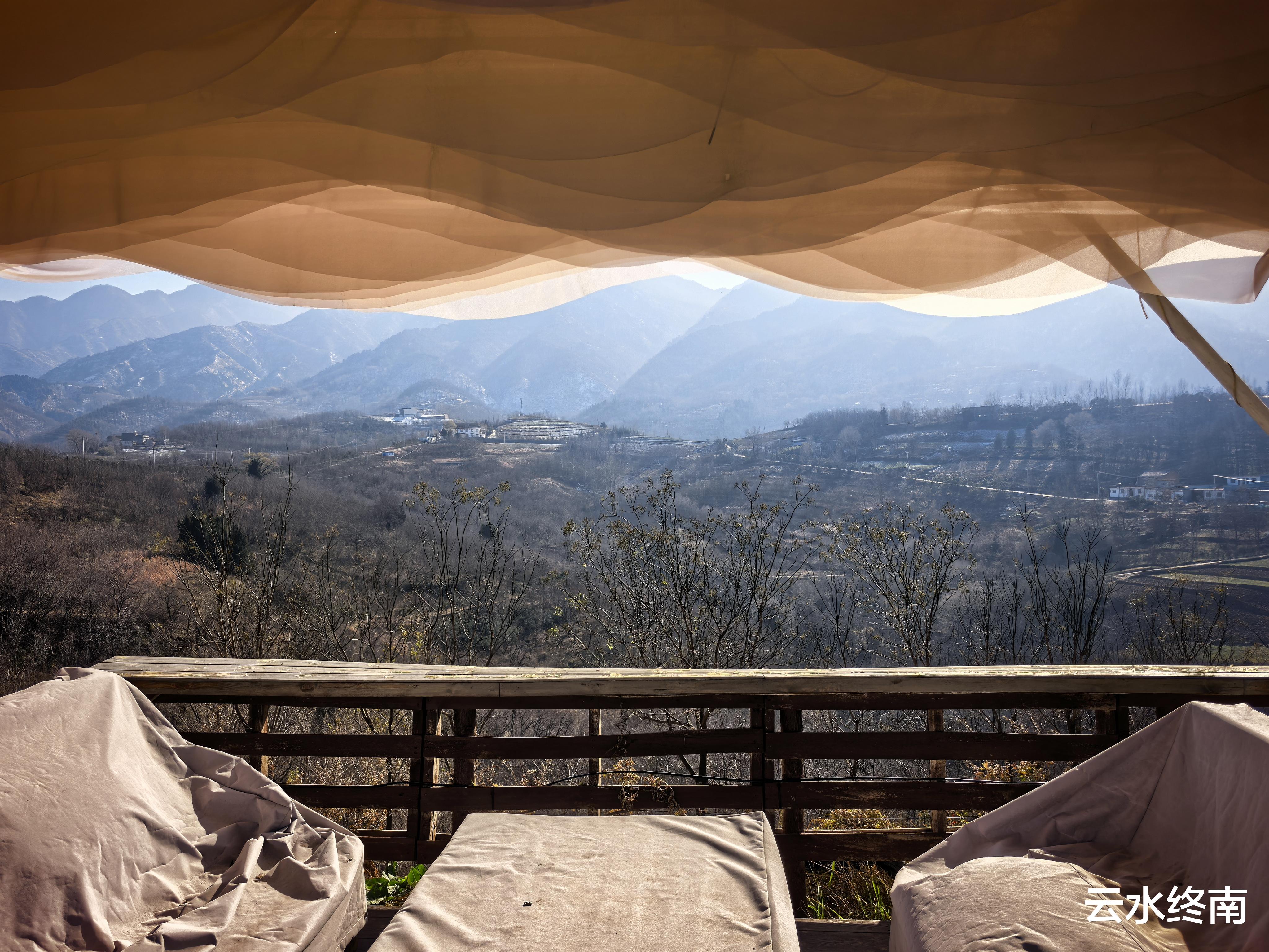 老板很会利用地方,边上还有几个帐篷围成隐蔽小院,正对着南山。
