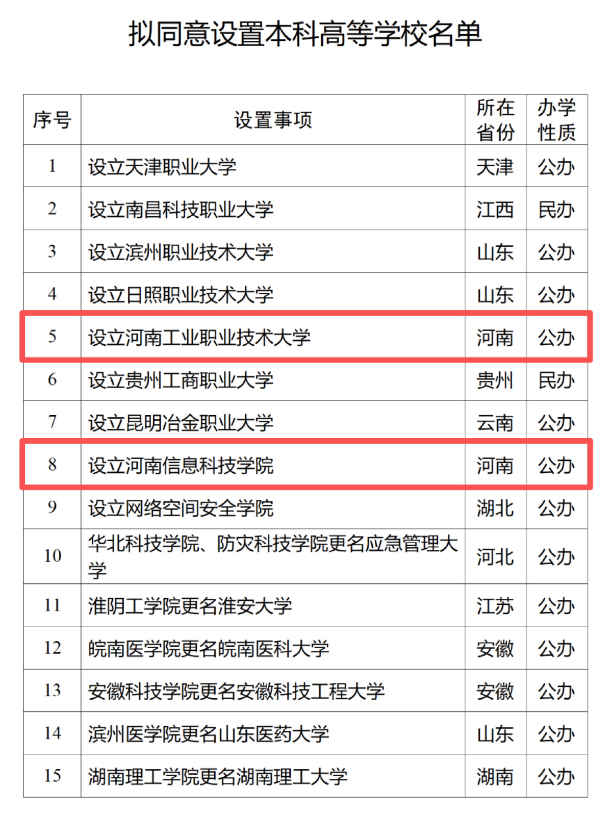1月4日,教育部官网发《关于拟同意设置本科高等学校的公示》(以下简称《公示》),其中,河南工业职业技术大学、河南信息科技学院两所院校入选。