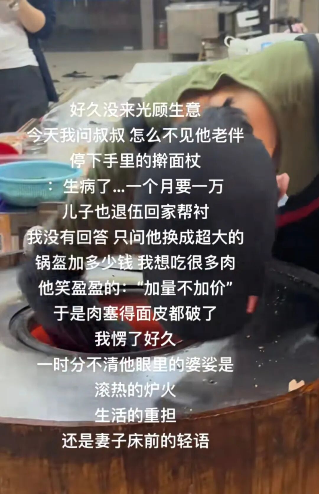 这让我想起了去年的锅盔叔叔。他的妻子因意外摔伤导致病理性骨折,需要长期治疗。他坚持凌晨备料、深夜收工,靠卖锅盔支付医疗费,但因费用高昂陷入困境。