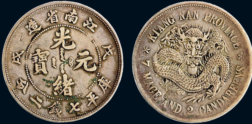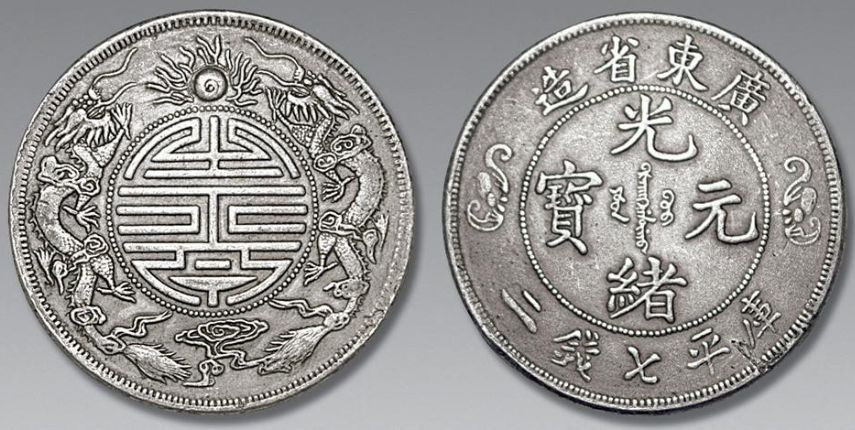 广东省双龙寿字币价格在 260 万 - 280 万之间,为纪念慈禧太后六十寿辰而铸。正面珠圈内 “光绪元宝”,珠圈外上环 “广东省造”,下环 “库平七钱二分”,左右蝙蝠图案寓意 “福”,与 “寿” 呼应。背面珠圈内两条缠绕巨龙,矫健恢宏,珠圈外上下环英文,左右圆点星。因历经战争,社会动荡,存世量极其有限,代表着光绪年间经济、社会风貌及宫廷文化,深受收藏家喜爱。