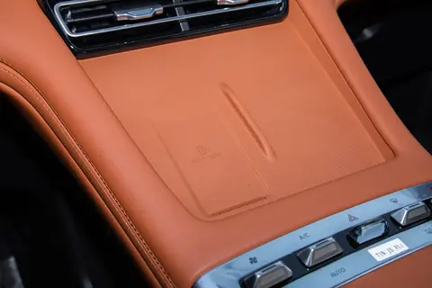 中控台前方的 50W 无线充电板也很贴心,现在大家都离不开手机,充电是个大问题。有了这个无线充电板,把手机放上去就能快速充电,不用到处找充电线,也不用插拔,特别方便。