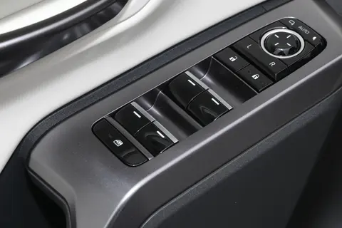 移步车侧,整车的姿态是亮点。源自电动陆巡的“Y字形”腰线从轮拱处有力地上扬至车尾,配合肌肉感十足的外扩轮拱和20英寸的大尺寸轮毂,共同勾勒出1:2的黄金轮高比。这种设计带来的直观感受是车身异常稳健、动感,彻底摆脱了传统燃油SUV常被诟病的臃肿感,静置时也蕴含着一种蓄势待发的力量感。