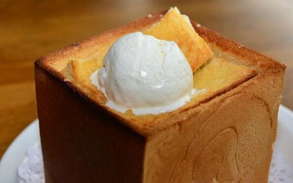 2.找个切好的圆面包(或者自己来切.然后用勺子在面包里面挖一个小坑),然后放入冰淇淋(根椐个人爱好吃多少放多少),合上面包