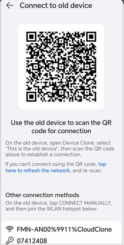 步骤 4. 在 iPhone 上打开应用程序,选择“这是旧设备”,然后按照提示通过 Wi-Fi 或二维码将 iPhone 连接到 HONOR 设备。
