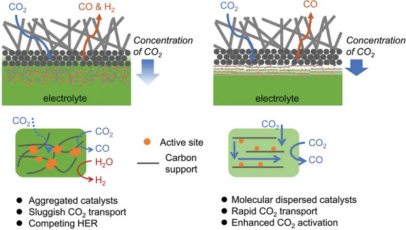 分子催化剂限域:将分子催化剂限域于石墨烯层间,通过π-π相互作用固定分子,避免团聚,同时调控分子的电子云分布,提升CO₂还原选择性。