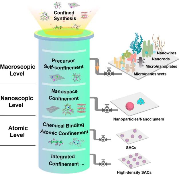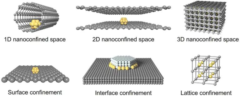 纳米限域效应是指将催化反应限制在至少一个维度处于纳米尺度(通常)的空间内,通过空间约束、界面作用与电子调控,改变反应热力学与动力学路径,最终提升催化性能的现象。