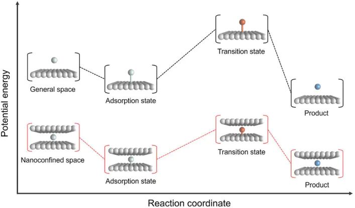 决定动力学速率的关键。纳米限域空间通过两种方式降低活化能。