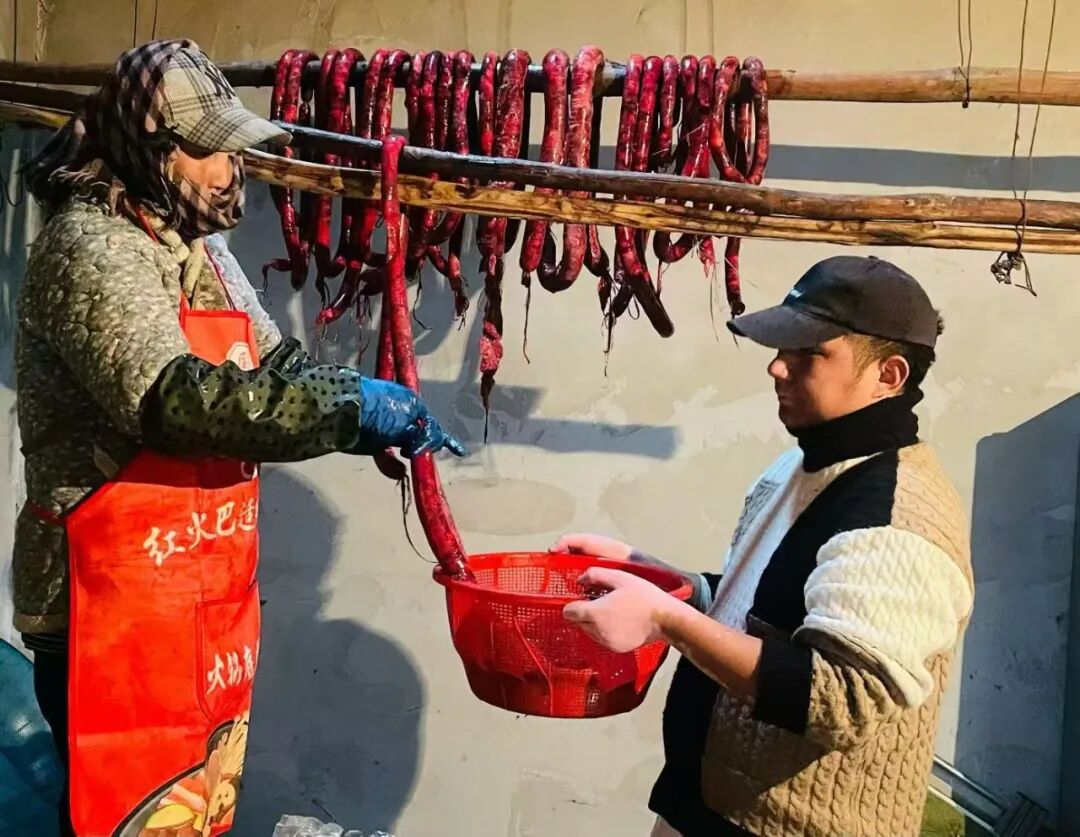 大姑姑是个干练的女人,即便有腰疾,仍一个人在老屋里灌完了香肠,把年猪肉剁得细腻,猪肠烫得干净,再把腌好的肉馅一点点塞进肠衣。