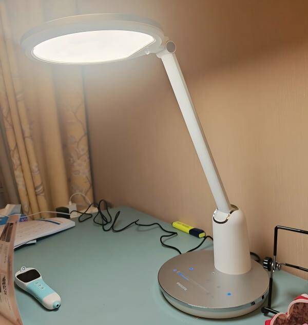 飞利浦轩坦这款护眼台灯延续了品牌经典的现代简约风格,金属材质搭配干净利落的线条,使整体质感沉稳而高级,无论放在书房、卧室还是办公空间,都能轻松融入环境。在功能设计上,它采用无极调光,不需要一格一格操作,只需手指滑动就能调节亮度,使用起来非常顺手。色温范围覆盖2800K–5100K,从温暖的暖光到清爽的冷光都能自由切换,满足不同学习和阅读场景的需求。不过这款台灯也并非完全无短板:灯头仅支持上下俯仰调节,无法左右旋转。如果桌面较大或学习活动范围较宽,照明覆盖可能会稍显不足,需要手动移动灯体来补光。
