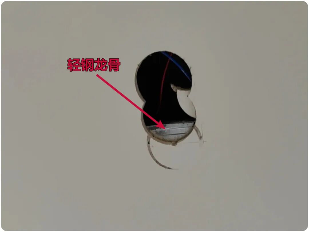 ▲①木工吊顶时,就会考虑龙骨避开灯孔位置,根源上不破坏龙骨结构。