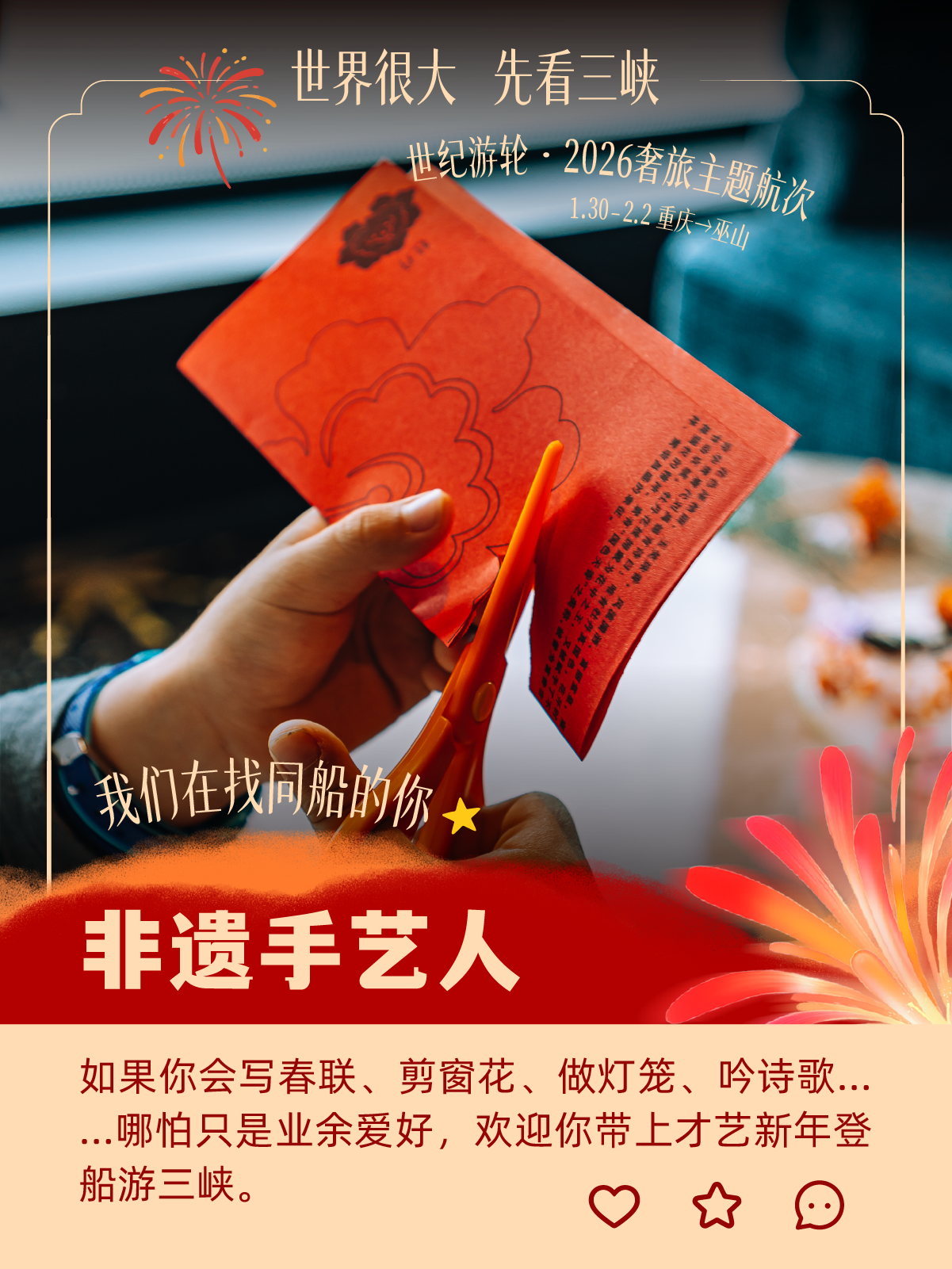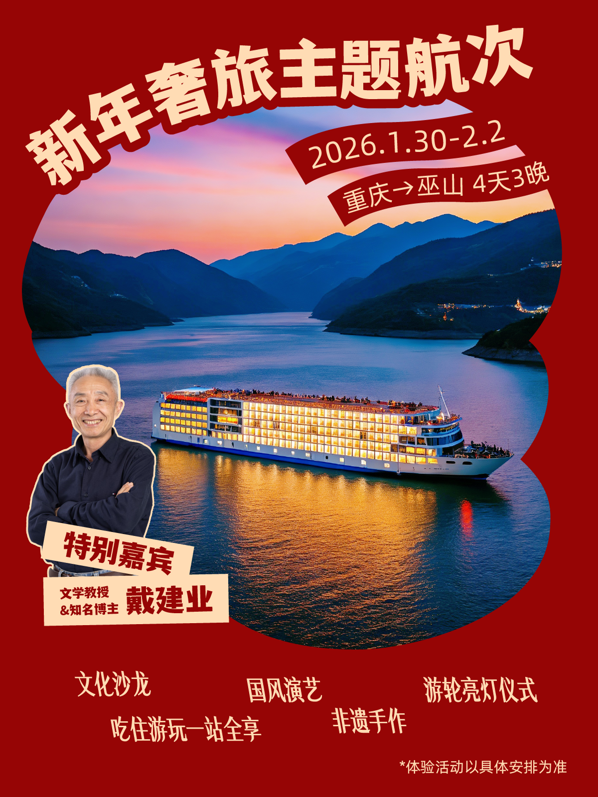 前往小红书,带话题#世界很大先看三峡 分享你的原创笔记:三峡记忆/新年愿望/非遗才艺,将有机会成为2026新年奢旅主题航次同船人!